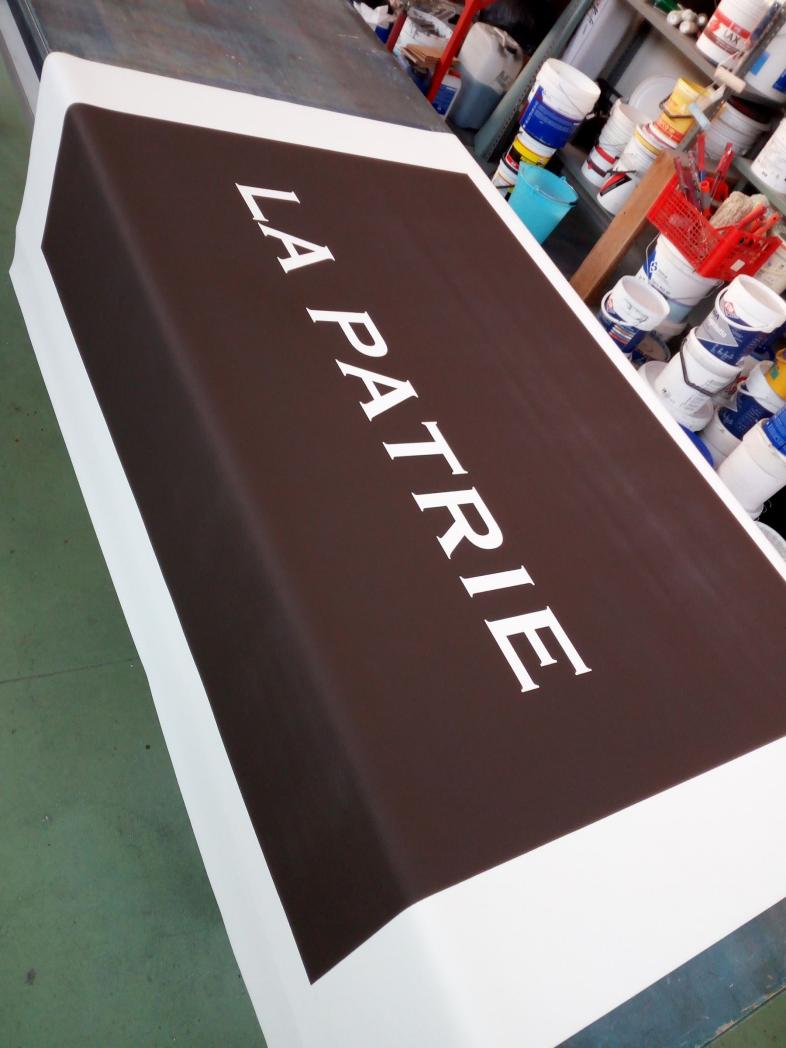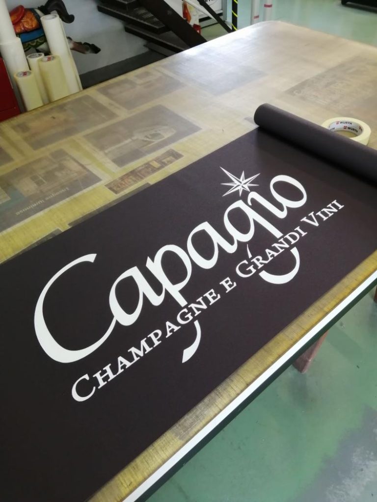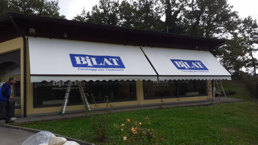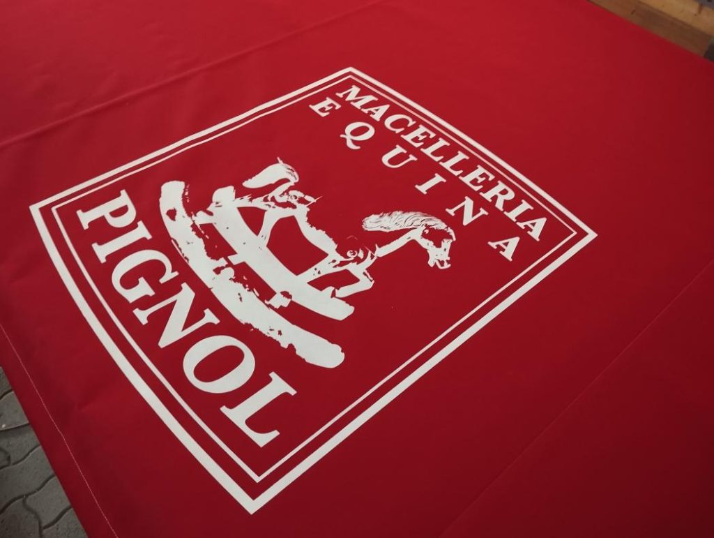 Personalizzazione di tende da sole, con stampa adesiva e/o decorazioni realizzate a mano.